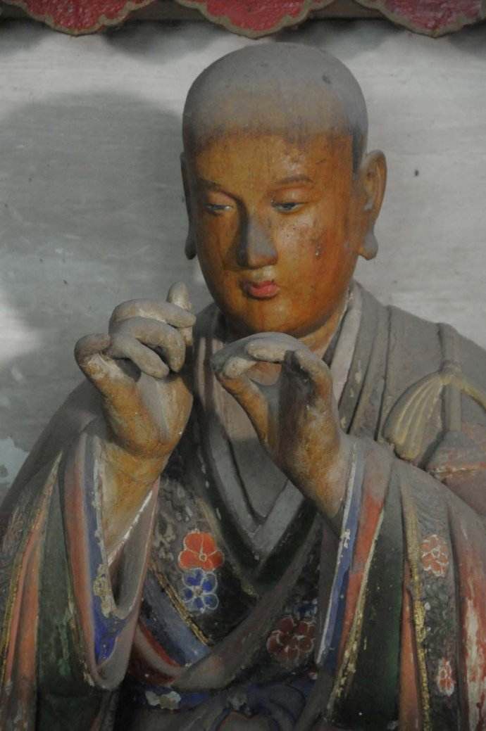 觀其形態(tài),或端恭、或柱杖、或合掌、或趺坐,或口講手指、或側(cè)耳細(xì)聽,準(zhǔn)確而生動。察其神情,勇猛、慍怒、和善、老成,有的據(jù)理力爭,有的閉眸沉思,有的笑容可掬,有的俯首低吟,有的縱目遠(yuǎn)眺,細(xì)致入微??雌錃赓|(zhì),有的清姿秀骨,有的寒傖潦倒,有的雍容華貴,無不形象傳神,可謂是栩栩如生,呼之欲動。